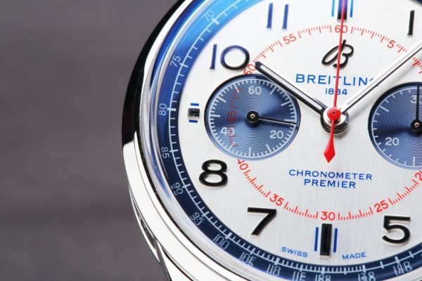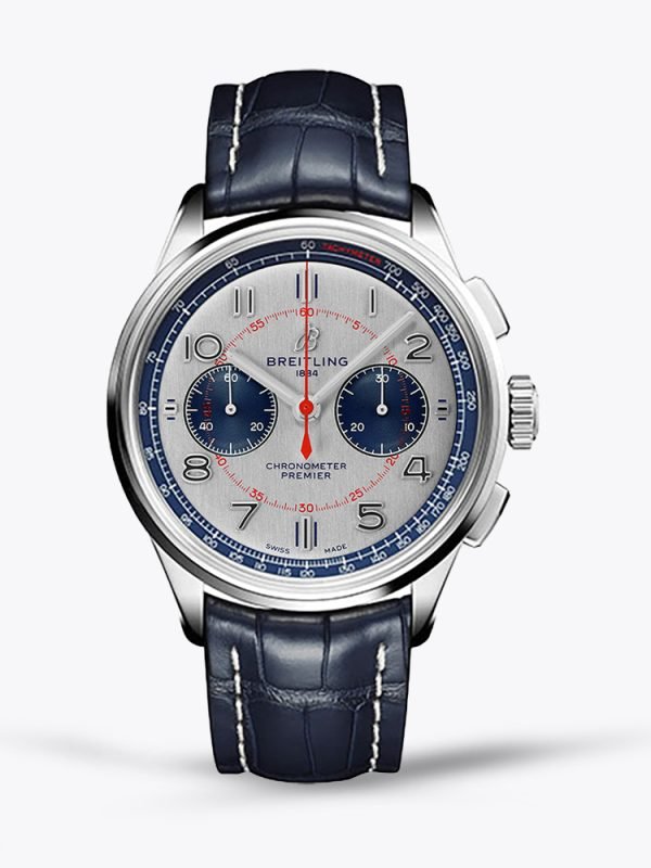 Silver Dial with Blue Sub-dials, Red Accents