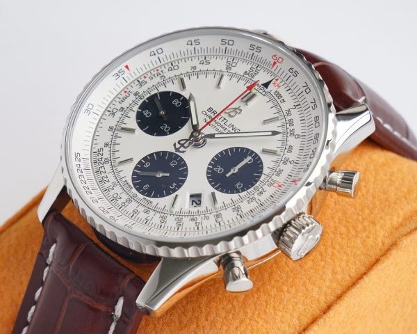 The double-direction ratcheted bezel is exquisitely engineered with exacting details, delivering precise movement similar to the authentic. Laser engraved case back, sapphire crystal and therefore a scratch-proof vision. Sealed to 30m, a timepiece that screams good design. This Breitling Navitimer AB0121211G1P2 replica provides great value and serious style.