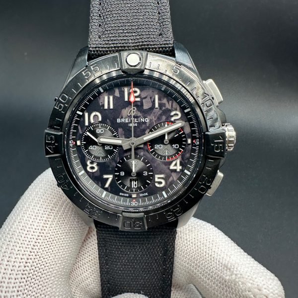 Breitling Avenger SB0147101B1X1 replica chronograph watch 44mm is a fashionable watch. It is suited for people who expect precision and elegance. It has a black dial with red-tipped subdials and a second hand. The legibility of the watch is very good and is quite attractive. A date window at the 6 o’clock position provides functionality to its spirited appearance.