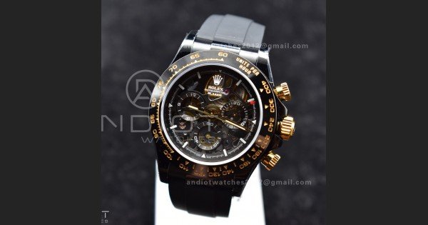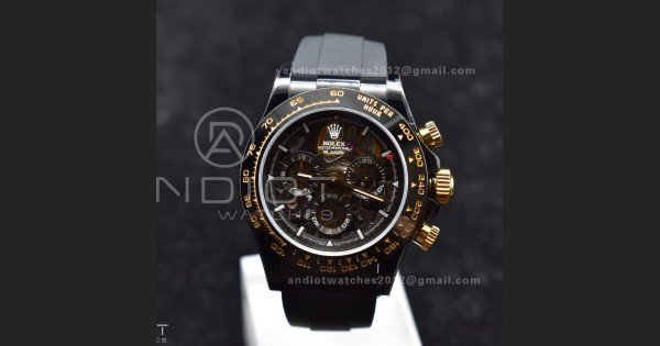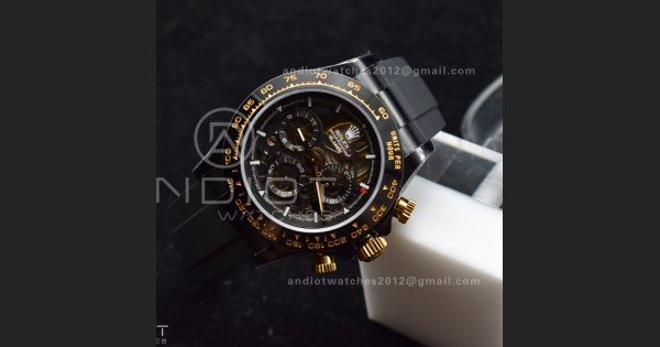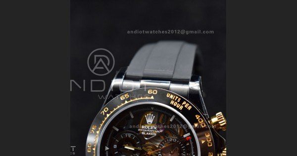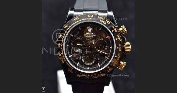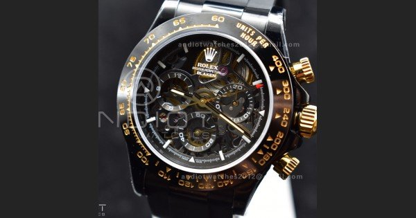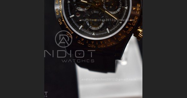 Reviews Over Blaken Daytona PVD Ceramic Bezel GETF Best Edition Skeleton Gold Dial on Black Rubber Strap SA4130
