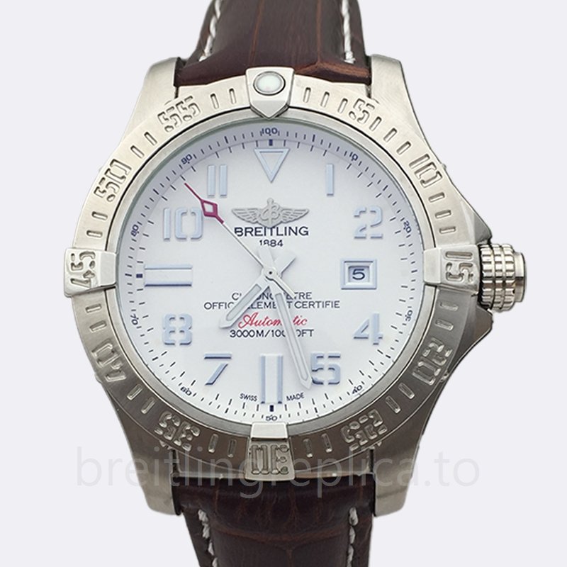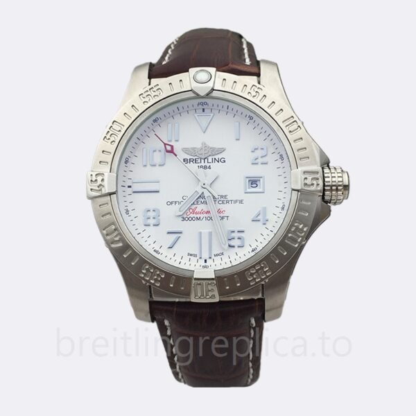 BrandBreitlingModelA1733110SeriesAvengerBand ColorBrown-toneCaseSize46mmGenderMen’sBandLengthAround 18cmCase ColorSilver-toneBezel Material: Stainless Steel. The stainless steel bezel material is one of the best materials for watches. It is more simple and endurable. It drives you improve your temperament from the inside out.Second Markers: Minute markers around the outer rim. The second mark on the watch is also called the clock hand. This design element has been used in many famous designs.Luminiscence: Hands. The luminiscence of the replica watch is hands. It helps you know the according time when in dark.Dial Markers: Arabic Numeral. The arabic numer on the dial unlike the ordinary dot dial, the watch uses some simple arabic numerals as dial markings to show us what time it is.Band Material: Leather.The leather material has become synonymous with steady and grace.Case Back: Solid. The sturdy back cover is the “second skin” of the watch. It covers metal and provides daily wear protection for the watch.Hand: Silver Tone. Regarding this watch, hand design is silver-tone. It blends perfectly with the dial.Watch Case: 316L. The case is made of solid 316L, which is suitable for daily seawater corrosion. This kind of steel is completely sufficient.Crystal: Mineral Glass. Mineral glass is a high-end mineral glass with a good reputation.Clasp: Deployment. Our watch uses a folding buckle, which has a unique design that creates a secure clasp, which can be opened and closed with ease.”A Replica”/”Quartz” version watch tip: This version is very discounted, the sub-dial index of “A Replica”/”Quartz” may be different from the original watch, please understand. If you really care about the differences, it’s better to choose our AAA and AAAAA versions. Also, due to differences in lighting and angles, please allow for slight differences between the main image and the real thing – especially for “A Replica”/”Quartz” version. In addition, you are welcome to view our physical pictures, if necessary, please contact our customer service. Thanks.