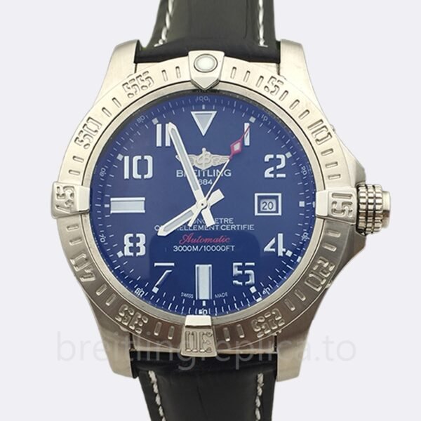 Band ColorBlack-toneCase ColorSilver-toneGenderMen’sModelA1733110.BC31BandWidthAround 22mmSeriesAvengerCaseThickness14mmBrandBreitlingCaseSize46mmWater Resistance: 30 meters. A good waterproof of the watch has been applied, it is 30 meters, which is like a real watch. Tips: The standard configuration is just life waterproof, need to purchase additional waterproof service which is up to 30 meters.Band Material: Leather.The watch we apply with a leather band is non-toxic, resistant to high and low temperatures, acid and alkali, flexible, and easy to maintain.Case Back: Solid. The hard solid bottom cover is the “second skin” of the watch. It covers metal and provides daily wear protection for the watch.Hand: Silver Tone. As you can see in the pictures above, the hand design of the watch is silver-tone which is pretty cool and fashionable.Luminiscence: Hands. Regarding this watch, luminescence is hands. As you can see in the pictures above.Watch Case: 316L. The material of this case is 316L, which will never fade, deform, and is environmentally friendly.Crystal: Mineral Glass. Mineral glass has lustrous, transparent crystals and is often used in high-precision optical instruments.Dial Markers: Arabic Numeral. The watch uses some simple arabic numerals marks to display the time, making the dial more intuitive.Bezel Material: Stainless Steel. The stainless steel bezel has been around since ancient times. It has been used as a decorative material for watches and clocks for more than two thousand years. A watch face made from stainless steel materials can withstand extreme temperatures.Second Markers: Minute markers around the outer rim. The small mark on the outer edge of the glass is one of the most recognized design elements in all industries. It is a small round dial placed on the outside of the watch to indicate the time.Clasp: Deployment. Our this watch uses a folding buckle strap, the combination of a watch case and a wrist watch can be a very appealing option for many consumers. Of course, one must keep in mind that the product should be durable and last a long time. This watch bracelet is made to meet all these needs. It is produced using high quality materials, designed with the concept of visual effect, and perfectly matches today’s fashion trends.”A Replica”/”Quartz” version watch tip: This version is very discounted, the sub-dial index of “A Replica”/”Quartz” may be different from the original watch, please understand. If you really care about the differences, it’s better to choose our AAA and AAAAA versions. Also, due to differences in lighting and angles, please allow for slight differences between the main image and the real thing – especially for “A Replica”/”Quartz” version. In addition, you are welcome to view our physical pictures, if necessary, please contact our customer service. Thanks.