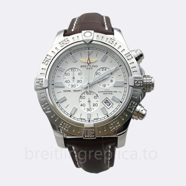 Case ColorSilver-toneDial ColorWhite DialModelA7338811.G790-001Band ColorBrown-toneGenderMen’sBrandBreitlingBandLengthAround 18cmCaseThickness14mmSeriesColtCase Back: Solid. The case uses a thick solid back, which allows you to use it longer and keep the watch for a long time.Water Resistance: 30 meters. Want a watch waterproof? Don’t hesitate to choose us, the depth of the watch is 30 meters, which is definitely enough for your daily life. Tips: The standard configuration is just life waterproof, need to purchase additional waterproof service which is up to 30 meters.Crystal: Mineral Glass. The mineral glass crystal mirror has a special anti-reflective coating to minimize light reflection and provide life water resistance without affecting its brightness. Mineral glass is a highly transparent crystal that can be used to make optical lenses, diffractive optical elements, and filters.Clasp: Deployment. The clasp of the watch has a unique design that creates a secure clasp, which can be opened and closed with ease.Watch Case: 316L. A good case can better protect your watch. 316L steel is a very strong and corrosion-resistant steel. It has the same strength as the most popular grades (HRC52, HRC55), but only half the weight. Compared with competitors, the production cost of stainless steel is also higher.Luminiscence: Hands. For the watch, the luminiscence is hands. With this watch, you will not lose your time in dark.Dial Markers: Index. The watch uses some simple indexes as dial markers to indicate time.Hand: Silver Tone. The design of the watch’s hands is silver-tone which is pretty cool and fashionable.Second Markers: Minute markers around the outer rim. The small mark on the outer edge of the glass is one of the most recognized design elements in all industries, and the minute mark around the outer edge.Band Material: Leather.The watch we apply with a leather band is of good quality and comfortable to wear.”A Replica”/”Quartz” version watch tip: This version is very discounted, the sub-dial index of “A Replica”/”Quartz” may be different from the original watch, please understand. If you really care about the differences, it’s better to choose our AAA and AAAAA versions. Also, due to differences in lighting and angles, please allow for slight differences between the main image and the real thing – especially for “A Replica”/”Quartz” version. In addition, you are welcome to view our physical pictures, if necessary, please contact our customer service. Thanks.
