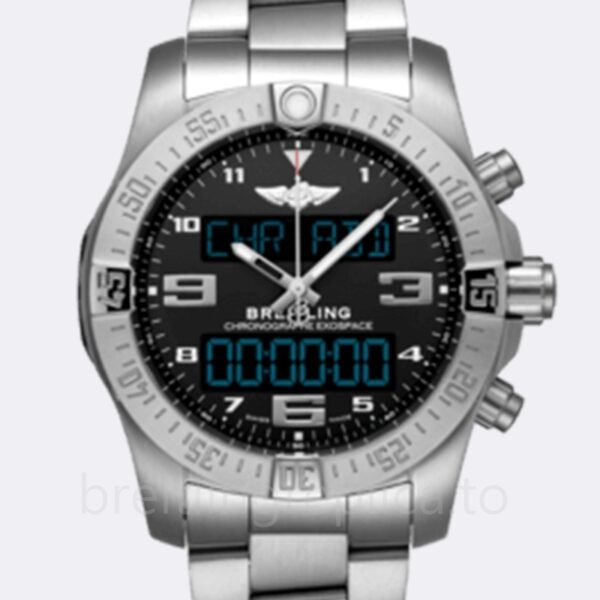 GenderMen’sBandWidthAround 22mmModelEB5510H21B1E1-001BrandBreitlingMovementQuartzDial ColorBlack DialSeriesExospaceCase ColorSilver-toneCaseThickness14mmSecond Markers: Minute markers around the outer rim. The second mark on the watch is also called the clock hand. This design element has been used in many well-known designs.Clasp: Fold Over Clasp. The innovative design of this watch allows the user to fold it over in multiple positions or angles for personal use.Case Back: Solid. The case uses a thick solid back, which is the “second skin” of the watch. It covers metal and provides daily wear protection for the watch.Luminiscence: Hands. About the watch, the luminiscence is hands. With this watch, you will not lose your time in dark.Watch Case: 316L. This case uses the best 316L, which is a high-grade stainless steel alloy. It is corrosion resistant, easy to weld, durable and safe to use.Crystal: Mineral Glass. We use mineral glass for our watches, which is a good quality glass that can protect your watch from water.Dial Markers: Arabic Numeral. The watch with arabic numerals are used as markers instead of dots, it can affect the appearance of the dial as well.Bezel Material: Stainless Steel. A luxury watch with a stainless steel bezel is the perfect material to use when designing a watch. The bezel will have endurable elegance, high performance, and high durability.Hand: Silver Tone. The hand design of the watch is silver-tone, which looks pretty stunning and high-end.Water Resistance: 30 meters. About the watch, the waterproof depth is 30 meters. But make sure to close the crown properly. Tips: The standard configuration is just life waterproof, need to purchase additional waterproof service which is up to 30 meters.Band Material: 316L. The raw material of this watch band is 316L, sweeping all major material masters and becoming the mainstream material of high-end fashion jewelry in Europe and America.”A Replica”/”Quartz” version watch tip: This version is very discounted, the sub-dial index of “A Replica”/”Quartz” may be different from the original watch, please understand. If you really care about the differences, it’s better to choose our AAA and AAAAA versions. Also, due to differences in lighting and angles, please allow for slight differences between the main image and the real thing – especially for “A Replica”/”Quartz” version. In addition, you are welcome to view our physical pictures, if necessary, please contact our customer service. Thanks.
