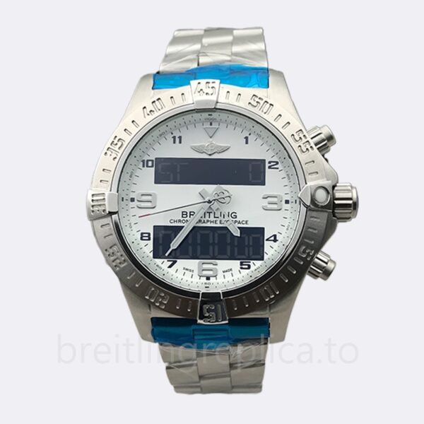 GenderMen’sSeriesExospaceDial ColorWhite DialBrandBreitlingCaseSize46mmModelExospaceB55-005Case ColorSilver-toneBezel Material: Stainless Steel. A luxury watch with a stainless steel bezel is more simple and endurable. It drives you improve your temperament from the inside out.Luminiscence: Hands. For the replica watch, we apply with luminiscence of hands. Something that shines allows you to find time in the dark.Watch Case: 316L. Our case is made of 316L stainless steel, which has excellent corrosion resistance. It is hypoallergenic and scratch resistant.Clasp: Fold Over Clasp. The clasp of the watch makes it easier and quicker for the user to open and fold the case over to keep it secure.Case Back: Solid. The hard solid bottom cover can transmit vibration better than the bottom cover of the plastic case.Band Material: 316L. Our band is made of 316L. For daily seawater corrosion, 316L steel is completely sufficient.Hand: Silver Tone. The hands of the replica watch is silver-tone, which is delicated and cool.Second Markers: Minute markers around the outer rim. The design of the second hand in the watch is as shown in the picture above. It is also called a clock hand. This design element has been used in many well-known designs, such as watches.Dial Markers: Arabic Numeral. The watch with arabic numer unlike the ordinary dot dial, it uses some simple arabic numerals as dial markings to show us what time it is.Crystal: Mineral Glass. As an excellent replica watch, we use a very firm glass to protect your watch from water.”A Replica”/”Quartz” version watch tip: This version is very discounted, the sub-dial index of “A Replica”/”Quartz” may be different from the original watch, please understand. If you really care about the differences, it’s better to choose our AAA and AAAAA versions. Also, due to differences in lighting and angles, please allow for slight differences between the main image and the real thing – especially for “A Replica”/”Quartz” version. In addition, you are welcome to view our physical pictures, if necessary, please contact our customer service. Thanks.