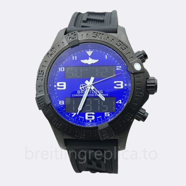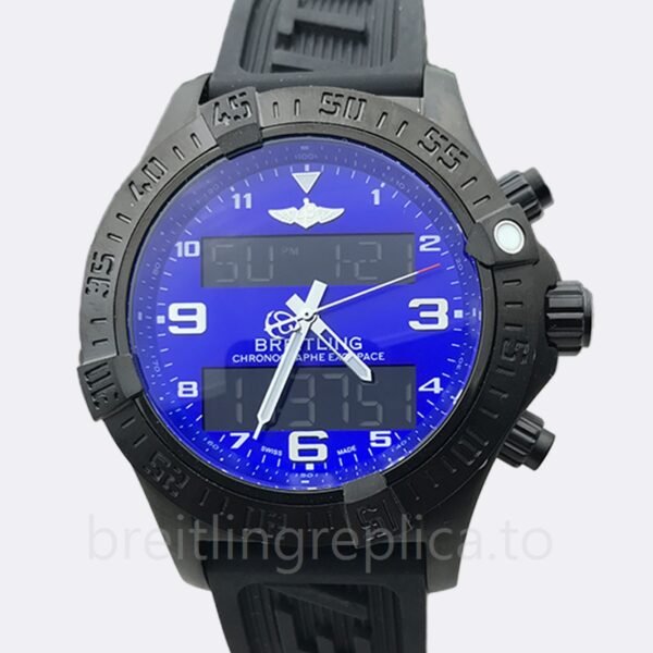 Band ColorBlackBrandBreitlingBandLengthAround 18cmDial ColorBlue DialCase ColorBlack-toneGenderMen’sSeriesExospaceCaseThickness14mmModelExospaceB55-009Second Markers: Minute markers around the outer rim. The second mark on the watch is located on the outside of the clock and is used to indicate the time.Dial Markers: Arabic Numeral. The arabic numerals on the dial instead of dots are applied to show us the time.Luminiscence: Hands. Regarding this watch, luminescence is hands. It makes your watch look more high-end.Clasp: Deployment. We use a deployment clasp for the watch to make it easier and quicker for the user to open and fold the case over to keep it secure.Crystal: Mineral Glass. The mineral glass crystal mirror is a special anti-reflective coating that minimizes light reflection and provides life water resistance without affecting its brightness.Bezel Material: Stainless Steel. The watch bezel is the most expensive component of the watch. It is a unique structure that makes it an excellent choice for watches. The material can resist scratches, abrasions and indentation. This bezel material is the most resistant to heat and cold of all materials used in watchmaking.Hand: Silver Tone. Regarding this watch, hand design is silver-tone, which fits your watch’s dial well.Case Back: Solid. The hard solid back cover can transmit impact better than the plastic back cover of the watch. Band Material: Rubber. We use a rubber strap is perfect for diving, due to its waterproof feature.Watch Case: 316L. The case is 316L, which swept all major material masters and became the mainstream material for high-end fashion jewelry in Europe and America.”A Replica”/”Quartz” version watch tip: This version is very discounted, the sub-dial index of “A Replica”/”Quartz” may be different from the original watch, please understand. If you really care about the differences, it’s better to choose our AAA and AAAAA versions. Also, due to differences in lighting and angles, please allow for slight differences between the main image and the real thing – especially for “A Replica”/”Quartz” version. In addition, you are welcome to view our physical pictures, if necessary, please contact our customer service. Thanks.