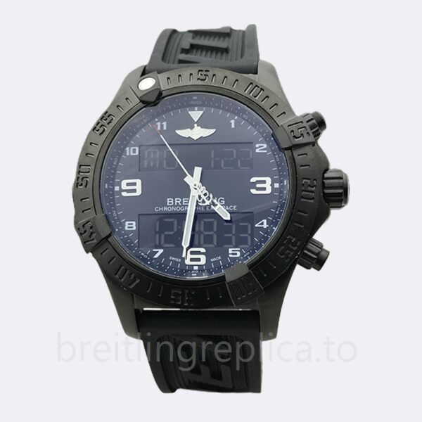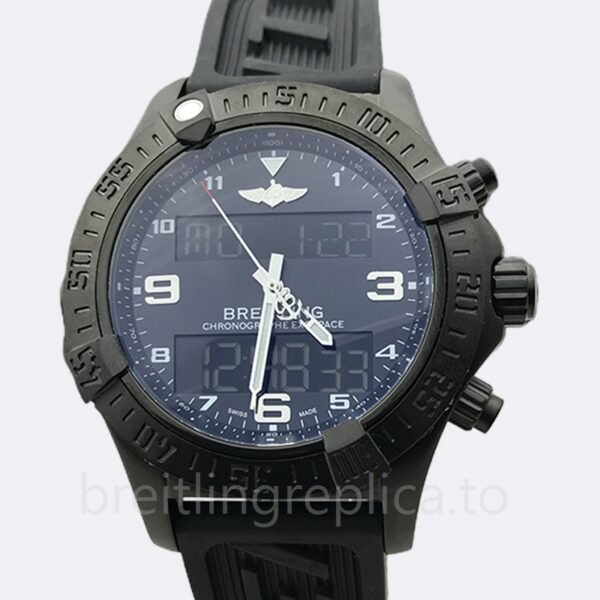 SeriesExospaceBandWidthAround 22mmCaseSize46mmBrandBreitlingGenderMen’sBand ColorBlackCaseThickness14mmModelVB5510Dial Markers: Arabic Numeral. With arabic numers, the watch use arabic numerals to indicate what time it is.Second Markers: Minute markers around the outer rim. The second marker is designed as shown in the picture above, with minute markers around the outer edge.Bezel Material: Stainless Steel. The stainless steel bezel material is one of the best materials for watches. It is a high-end material made from stainless steel. It is the most expensive material of the watch. In addition, stainless steel bezel is a substance with high flexibility and energy absorption properties which can be used as the core medium of the watch.Watch Case: 316L. The case is the most important part of the watch. 316L is one of the most heat-resistant stainless steel grades. Its corrosion resistance is very good, even at temperatures as high as 1100*F, without any further heat treatment.Crystal: Mineral Glass. Watches with mineral glass can block moisture and dust, protect the hands, dial and movement.Case Back: Solid. The sturdy back cover allows you to use it longer and keep the watch longer.Water Resistance: 30 meters. The waterproof depth of the watch is 30 meters, which is like a real watch. Tips: The standard configuration is just life waterproof, need to purchase additional waterproof service which is up to 30 meters.Clasp: Deployment. This watch case has a designed lock which is more durable and stylish. Band Material: Rubber. As a new product, rubber straps is perfect for diving, due to its waterproof feature.Luminiscence: Hands. As for the watch’s luminiscence, it is hands. As you can see in the pictures above.”A Replica”/”Quartz” version watch tip: This version is very discounted, the sub-dial index of “A Replica”/”Quartz” may be different from the original watch, please understand. If you really care about the differences, it’s better to choose our AAA and AAAAA versions. Also, due to differences in lighting and angles, please allow for slight differences between the main image and the real thing – especially for “A Replica”/”Quartz” version. In addition, you are welcome to view our physical pictures, if necessary, please contact our customer service. Thanks.