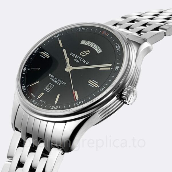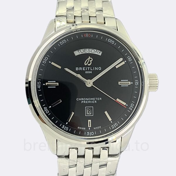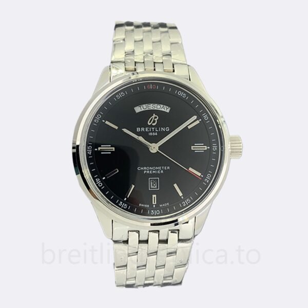 GenderMen’sModelA45340241B1X3-001BrandBreitlingMovementAutomaticSeriesPremierDial ColorBlack DialCaseSize46mmSecond Markers: Minute markers around the outer rim. The small mark on the outer edge of the glass edge is one of the most recognized design elements in all industries, also known as clock hands. This design element has been used in many famous designs, such as watches and other objects.Clasp: Fold Over Clasp. The combination of a watch case and a bracelet watch which is more convenient for disassembly and replacement, and also ensures the quality and comfort of the strap.Band Material: 316L. The band is made of 316L stainless steel, which can be flexibly formed and maintained in precise shapes. This makes it durable and can withstand extreme temperatures.Bezel Material: Stainless Steel. The stainless steel bezel material is one of the best materials for watches. It is a different way to look at watches. The design of the bezel brings a new level of quality and sophistication to the watch. This material allows for a more fused look and enhances the usability of the timepiece.Luminiscence: Hands. For the watch, the luminiscence is hands. With this watch, you will not waste time to check the real-time.Watch Case: 316L. The case made of 316L is one of the most heat-resistant stainless steel grades. Its corrosion resistance is very good, even at temperatures as high as 1100*F, without any further heat treatment.Crystal: Sapphire Crystal. For watches, crystal is a very important part, a lustrous and transparent crystal, which is often used in high-precision optical instruments. Tip: The first-range cheap movement version is made of mineral glass.Dial Markers: Index. Indexs are used in this watch as dial markers to indicate time.Hand: Silver Tone. The hands of the replica watch is silver-tone. It fits your watch dial perfectly.Water Resistance: 30 meters. The watch we use a waterproof at 30 meters, which is fully enough for your daily life. Tips: The standard configuration is just life waterproof, need to purchase additional waterproof service which is up to 30 meters.Case Back: Solid. We use a sturdy back cover, which is usually used to protect the movement of the watch from scratches and external damage. These watch cases can also increase the durability and strength of the watch movement.”A Replica”/”Quartz” version watch tip: This version is very discounted, the sub-dial index of “A Replica”/”Quartz” may be different from the original watch, please understand. If you really care about the differences, it’s better to choose our AAA and AAAAA versions. Also, due to differences in lighting and angles, please allow for slight differences between the main image and the real thing – especially for “A Replica”/”Quartz” version. In addition, you are welcome to view our physical pictures, if necessary, please contact our customer service. Thanks.