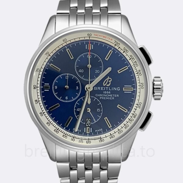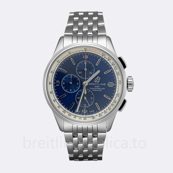 SeriesPremierBrandBreitlingCaseThickness14mmBand ColorSilver-toneBandWidthAround 22mmBandLengthAround 18cmDial ColorBlue DialGenderMen’sModelA13315351C1A1Clasp: Fold Over Clasp. A fold over clasp is used in the watch which makes it more convenient for you to wear the watch, and the appearance is more beautiful.Case Back: Solid. The sturdy bottom cover screw-in design ensures tight waterproof performance, and the sturdy bottom cover has superior waterproof performance and durability.Crystal: Mineral Glass. Mineral glass is a good choice, because it can block moisture and dust, protect the hands, dial and movement.Hand: Silver Tone. The watch’s hands is silver-tone. It fits your watch dial perfectly.Luminiscence: Hands. For the replica watch, we apply with luminiscence of hands. It can help you know the corresponding time in the dark.Bezel Material: Stainless Steel. The stainless steel bezel material is one of the best materials for watches. It is a different way to look at watches. The design of the bezel brings a new level of quality and sophistication to the watch. This material allows for a more fused look and enhances the usability of the timepiece.Watch Case: 316L. The material in this case comes from 316L stainless steel, making it durable, reliable and durable.Dial Markers: Index. Index dial markers are used instead of the usual Roman numerals, and will affect the appearance of the dial.Band Material: 316L. The band uses the best 316L stainless steel material, which has the flexibility to form and maintain precise shapes. This makes it durable and can withstand extreme temperatures.Second Markers: Minute markers around the outer rim. The minute mark around the outer edge of the glass is one of the most recognized design elements in all industries, also known as clock hands. This design element is used in many well-known designs.”A Replica”/”Quartz” version watch tip: This version is very discounted, the sub-dial index of “A Replica”/”Quartz” may be different from the original watch, please understand. If you really care about the differences, it’s better to choose our AAA and AAAAA versions. Also, due to differences in lighting and angles, please allow for slight differences between the main image and the real thing – especially for “A Replica”/”Quartz” version. In addition, you are welcome to view our physical pictures, if necessary, please contact our customer service. Thanks.