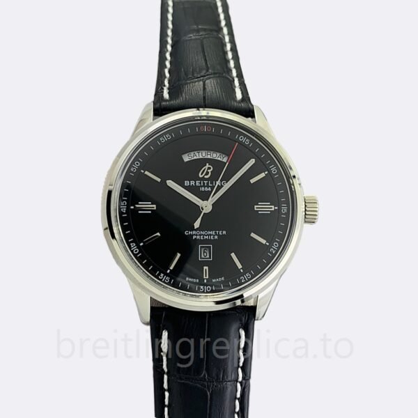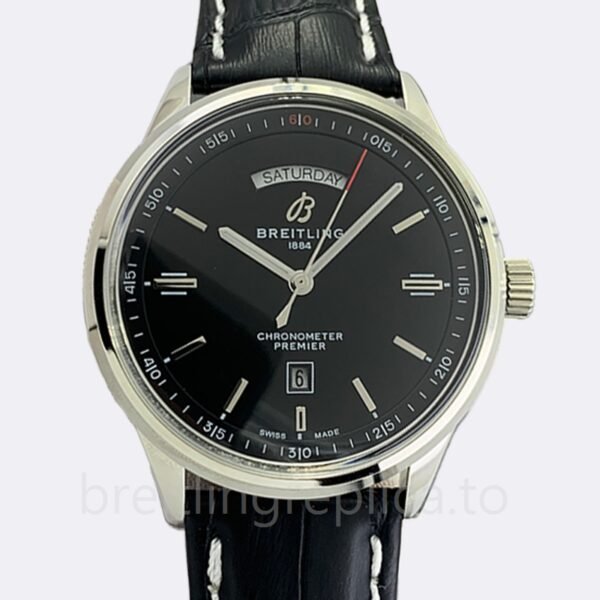 GenderMen’sBand ColorBlack-toneCaseSize46mmCaseThickness14mmModelA45340241B1X3BrandBreitlingBandWidthAround 22mmCase ColorSilver-toneSeriesPremierSecond Markers: Minute markers around the outer rim. The small mark on the outer edge of the glass is one of the most recognized design elements in all industries. It is a small round dial placed on the outside of the watch to indicate the time.Case Back: Solid. The case uses a thick solid back, which is the most important part of the watch. It is strong, durable and scratch resistant.Bezel Material: Stainless Steel. A luxury watch with a stainless steel bezel a unique structure that makes it an excellent choice for watches. The material can resist scratches, abrasions and indentation. This bezel material is the most resistant to heat and cold of all materials used in watchmaking.Watch Case: 316L. The watch case is made of 316L stainless steel, which is a medium-to-high-end shell material. Because it contains molybdenum, it is more wear-resistant than 304, and the grade is also exellent.Luminiscence: Hands. For the replica watch, we apply with luminiscence of hands. With this watch, you will not waste time to check the real-time.Dial Markers: Index. The replica watch uses a index as a dial marker instead of usual Roman numerals to indicate the time.Water Resistance: 30 meters. About the watch, the waterproof depth is 30 meters. But please make sure you close the crown properly. Tips: The standard configuration is just life waterproof, need to purchase additional waterproof service which is up to 30 meters.Crystal: Sapphire Crystal. As an excellent replica watch, we use the only high-quality anti-reflective material that can provide scratch resistance without affecting its gloss. Using this new technology, you can protect the surface of your watch at the most important moments in your life. Tip: The first-range cheap movement version is made of mineral glass.Hand: Silver Tone. As for the watch’s hands, it is silver-tone, which fits your watch’s dial well.Clasp: Deployment. The clasp of the watch – the combination of a watch case and a wrist watch can be a very appealing option for many consumers. Of course, one must keep in mind that the product should be durable and last a long time. This watch bracelet is made to meet all these needs. It is produced using high quality materials, designed with the concept of visual effect, and perfectly matches today’s fashion trends.Band Material: Leather.Leather band the most popular strap for high-end watches.”A Replica”/”Quartz” version watch tip: This version is very discounted, the sub-dial index of “A Replica”/”Quartz” may be different from the original watch, please understand. If you really care about the differences, it’s better to choose our AAA and AAAAA versions. Also, due to differences in lighting and angles, please allow for slight differences between the main image and the real thing – especially for “A Replica”/”Quartz” version. In addition, you are welcome to view our physical pictures, if necessary, please contact our customer service. Thanks.