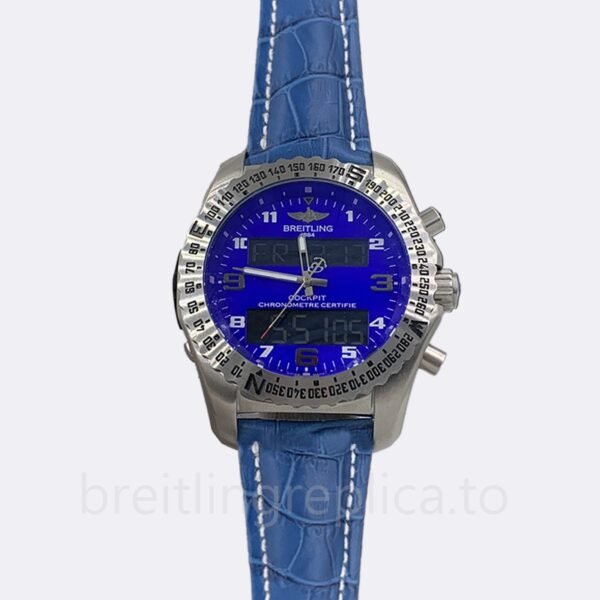 GenderMen’sBrandBreitlingBandWidthAround 22mmSeriesProfessionalBand ColorBlueModelEB501019-002Case ColorSilver-toneBandLengthAround 18cmCaseThickness14mmBand Material: Leather.A high-end watch with a leather strap has become synonymous with steady and grace.Bezel Material: Stainless Steel. A luxury watch with a stainless steel bezel made of stainless steel bezel material. It needs to be durable and can resist abrasion. The design of stainless steel bezel material makes it suitable for the watch bezel because of its ability to withstand a lot of pressure and friction.Watch Case: 316L. The case made of 316L is one of the most heat-resistant stainless steel grades. Its corrosion resistance is very good, even at temperatures as high as 1100*F, without any further heat treatment.Hand: Silver Tone. About the watch, the hands is silver-tone, which is the same color as your case color.Clasp: Deployment. A deployment clasp is used in the watch which has a unique design that creates a secure clasp, which can be opened and closed with ease.Dial Markers: Arabic Numeral. The arabic numer dial mark determines the time by looking at the arabic numer, which is different from a dot dial.Water Resistance: 30 meters. The watch’s waterproof depth is 30 meters. But please make sure you close the crown properly. Tips: The standard configuration is just life waterproof, need to purchase additional waterproof service which is up to 30 meters.Crystal: Mineral Glass. Mineral glass is high-end, good reputation.Case Back: Solid. The sturdy back cover is a great way to add style and elegance to your wrist. Scratch-resistant and wear-resistant watches are becoming more and more popular.Luminiscence: Hands. The luminiscence of the replica watch is hands. It makes your watch look more funny and functional.Second Markers: Minute markers around the outer rim. The minute mark around the outer edge of the glass is one of the most recognized design elements in all industries. The second mark is a small disc placed on the outside of the watch to indicate the time.”A Replica”/”Quartz” version watch tip: This version is very discounted, the sub-dial index of “A Replica”/”Quartz” may be different from the original watch, please understand. If you really care about the differences, it’s better to choose our AAA and AAAAA versions. Also, due to differences in lighting and angles, please allow for slight differences between the main image and the real thing – especially for “A Replica”/”Quartz” version. In addition, you are welcome to view our physical pictures, if necessary, please contact our customer service. Thanks.