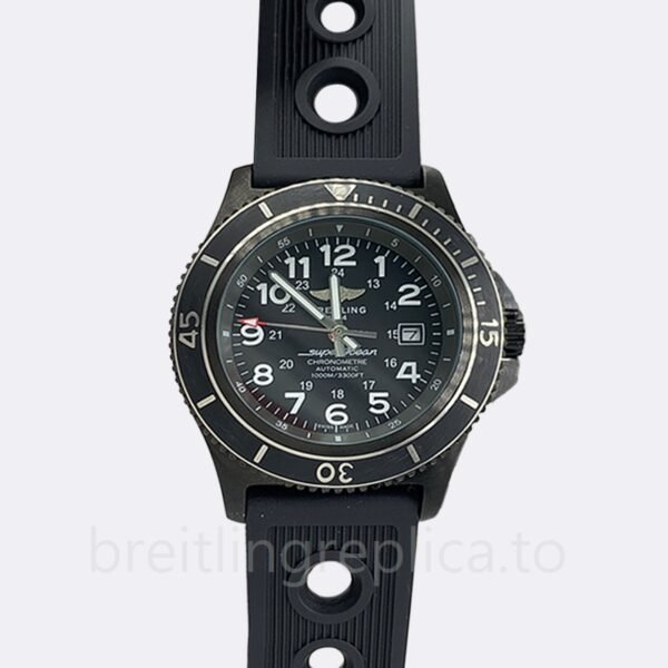 Dial ColorBlack DialSeriesSuperoceanBrandBreitlingModelA17392D7Case ColorBlack-toneBandWidthAround 22mmCaseThickness14mmGenderMen’sCrystal: Mineral Glass. Our watches use mineral glass, which has good thermal properties, excellent electrical and dielectric properties, and is resistant to chemical corrosion. It has the characteristics of high temperature resistance, good thermal conductivity, high hardness, infrared penetration, and good chemical stability.Second Markers: Minute markers around the outer rim. The second marked design is called the hand of the clock. This design element is used in many well-known designs such as clocks, and other objects. Band Material: Rubber. As a new product, rubber straps has a good waterproof feature and easy to maintain.Watch Case: 316L. A good case can better protect your watch, 316L your skin can live in harmony forever without causing harm.Dial Markers: Arabic Numeral. We can use watches with arabic numerals to indicate the current time.Hand: Silver Tone. About the watch, the hands is silver-tone that is simple but luxury.Case Back: Solid. In the world of watches, a sturdy back cover is very important, allowing you to use it longer and keeping the watch longer.Clasp: Deployment. We use a deployment clasp for the watch allows the user to fold it into several positions or angles for personal use.Water Resistance: 30 meters. The watch we use a waterproof at 30 meters, which is definitely enough for your daily life. Tips: The standard configuration is just life waterproof, need to purchase additional waterproof service which is up to 30 meters.Luminiscence: Hands. As for the watch’s luminiscence, it is hands. The luminous things makes your watch more delicate and high-end.Bezel Material: Stainless Steel. Bezel material is one of the most beautiful and delicate parts in the watch. The stainless steel bezel provides a durable, endurable and expensive look to the watch.”A Replica”/”Quartz” version watch tip: This version is very discounted, the sub-dial index of “A Replica”/”Quartz” may be different from the original watch, please understand. If you really care about the differences, it’s better to choose our AAA and AAAAA versions. Also, due to differences in lighting and angles, please allow for slight differences between the main image and the real thing – especially for “A Replica”/”Quartz” version. In addition, you are welcome to view our physical pictures, if necessary, please contact our customer service. Thanks.