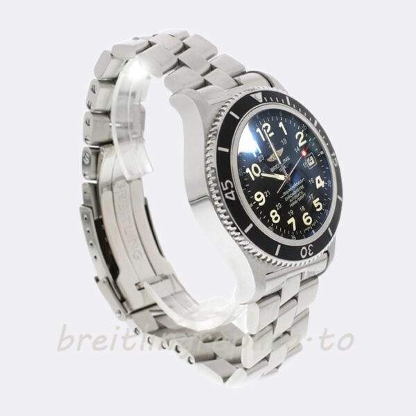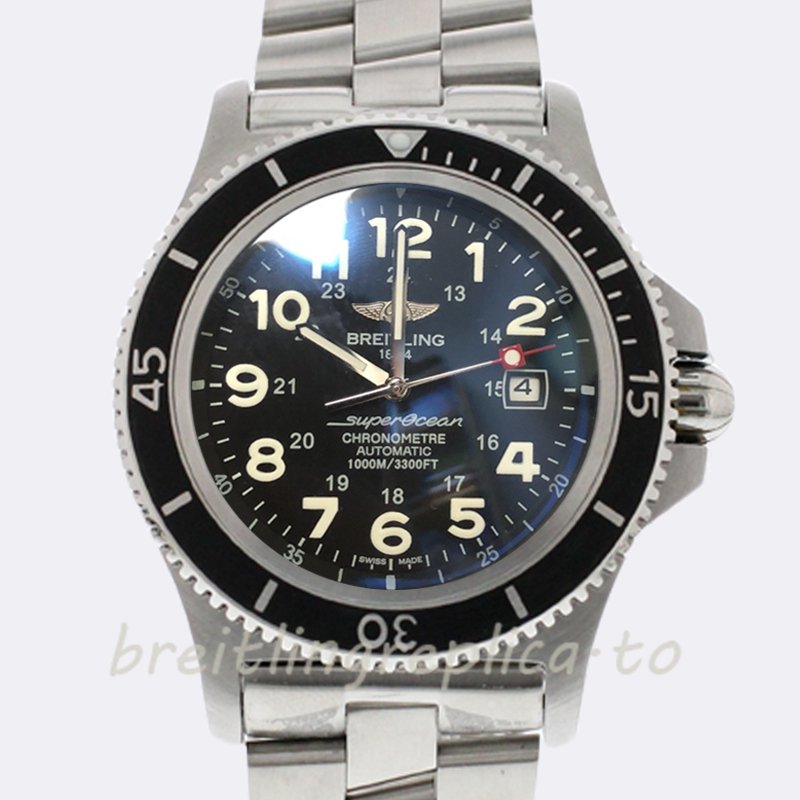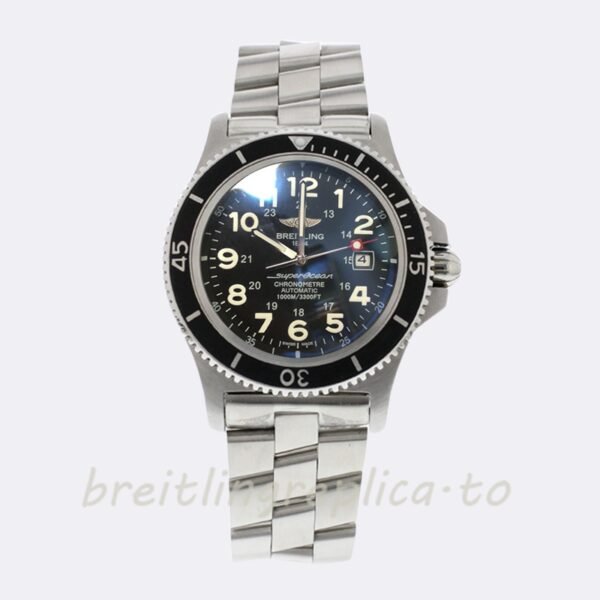 BrandBreitlingCase ColorSilver-toneGenderMen’sDial ColorBlack DialSeriesSuperoceanModelA17365-JCaseThickness15mmCrystal: Mineral Glass. We use mineral glass for our watches, which is a natural material that can reflect light to create an illusion. Its long-lasting anti-reflective coating makes it ideal for scratch resistance, and the brightness of the crystal remains almost unchanged.Bezel Material: Stainless Steel. The stainless steel bezel is the prime material used for watch making. It has has high dimensional stability, high resilience and UV resistance. It can be used in both hard and soft cases. It’s also resistant to water, heat and deliquescent substances like oil or food.Dial Markers: Arabic Numeral. The watch has arabic numeral as dial marks instead of dots to show us the time.Luminiscence: Hands. About the watch, the luminiscence is hands. These luminiscence makes your watch more refined and high-end.Second Markers: Minute Markers around the outer rim. The design of the other marks in the watch is that the second mark is a small disc, placed on the outside of the clock to indicate the time.Water Resistance: 30 meters. About the watreproof depth of the watch, it is 30 meters. But please make sure you close the crown properly. Tips: Standard configuration is just daily waterproof, need to purchase additional waterproof service which is up to 30 meters.Band Material: 316L. The band is made of sturdy 316L stainless steel, which has very good corrosion resistance and good texture.Clasp: Fold Over Clasp. This watch case has a designed clasp which is more durable and stylish.Hand: Silver-tone. As for the watch’s hands, it is silver-tone which is pretty cool and fashionable.Case Back: Solid. The solid bottom cover is neither soft nor flexible. Made of steel, it has excellent durability and scratch resistance.Please understand that the subdial of different versions may have differences. If you need real pictures please contact customer service, thanks.