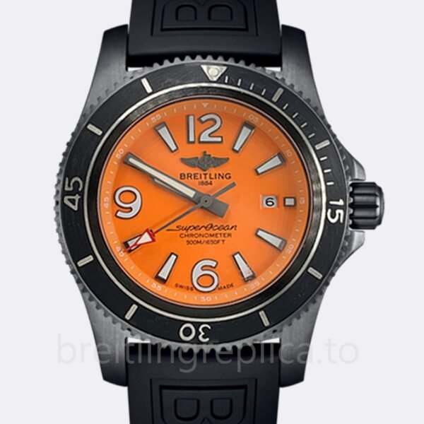 GenderMen’sMovementAutomaticModelM17368D71I1S2Dial ColorOrange DialSeriesSuperoceanBandWidthAround 22mmBandLengthAround 18cmCaseThickness14mmBrandBreitlingBezel Material: Stainless Steel. A luxury watch with a stainless steel bezel is a high-end material made from stainless steel. It is the most expensive material of the watch. In addition, stainless steel bezel is a substance with high flexibility and energy absorption properties which can be used as the core medium of the watch.Clasp: Deployment. A deployment clasp used here is a great way to protect and store your watch. It has a unique design that creates a secure lock, which can be easily opened and closed.Luminiscence: Hands. The style of the watch’s luminiscence is hands. It can help you know the corresponding time in the dark.Hand: Silver Tone. For the replica watch, we apply with hands of silver-tone, which is the same color as your case color.Water Resistance: 30 meters. About the watch, the waterproof depth is 30 meters. But make sure to close the crown properly. Tips: The standard configuration is just life waterproof, need to purchase additional waterproof service which is up to 30 meters. Band Material: Rubber. A high-end watch with a rubber strap is gradually becoming a symbol of youth and sport.Case Back: Solid. The sturdy case back can make the watch more durable, and they can withstand harsh outdoor environments such as rain, snow, cold or hot weather.Crystal: Sapphire Crystal. The material of the watch is a lustrous and transparent crystal, which is usually used for high-precision optical instruments. Tip: The first-range cheap movement version is made of mineral glass.Watch Case: 316L. The material in this case comes from 316L stainless steel, making it durable, reliable and durable.Second Markers: Minute markers around the outer rim. The small mark on the outer edge of the glass is one of the most recognized design elements in all industries and can be used in many different applications, such as watches, clock radios, etc, to create timeless works.”A Replica”/”Quartz” version watch tip: This version is very discounted, the sub-dial index of “A Replica”/”Quartz” may be different from the original watch, please understand. If you really care about the differences, it’s better to choose our AAA and AAAAA versions. Also, due to differences in lighting and angles, please allow for slight differences between the main image and the real thing – especially for “A Replica”/”Quartz” version. In addition, you are welcome to view our physical pictures, if necessary, please contact our customer service. Thanks.