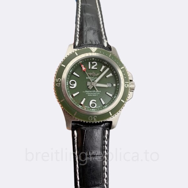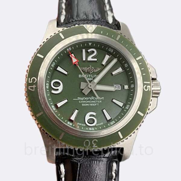SeriesSuperoceanCase ColorSilver-toneDial ColorGreen DialCaseThickness14mmGenderMen’sBrandBreitlingModelA17367A11L1W1BandWidthAround 22mmCrystal: Sapphire Crystal. For the watch, crystal is a very important part, it can isolate moisture and dust, protect the hands, dial and movement. Tip: The first-range cheap movement version is made of mineral glass.Dial Markers: Index. The watch uses some simple indexes as dial markers instead of Roman numerals to indicate time.Second Markers: Minute markers around the outer rim. The minute mark around the outer edge of the glass is a design element that represents time and can be used in various applications.Hand: Silver Tone. For the replica watch, we apply with hands of silver-tone, which is the same color as your case color.Case Back: Solid. The sturdy back cover can make the watch more durable, and they can withstand harsh outdoor environments such as rain, snow, cold or hot weather.Luminiscence: Hands. As for the watch’s luminiscence, it is hands. With this watch, you will not lose your time in dark.Bezel Material: Stainless Steel. A luxury watch with a stainless steel bezel has high dimensional stability, high resilience and UV resistance. It can be used in both hard and soft cases. It’s also resistant to water, heat and deliquescent substances like oil or food.Watch Case: 316L. This watch case uses the best 316L, which can be polished, frosted, and can be plated with various materials. It has stable performance and is the best choice for watch cases.Clasp: Deployment. The clasp design of the watch is more durable and stylish.Band Material: Leather.Leather band is non-toxic, resistant to high and low temperatures, acid and alkali, flexible, and easy to maintain.”A Replica”/”Quartz” version watch tip: This version is very discounted, the sub-dial index of “A Replica”/”Quartz” may be different from the original watch, please understand. If you really care about the differences, it’s better to choose our AAA and AAAAA versions. Also, due to differences in lighting and angles, please allow for slight differences between the main image and the real thing – especially for “A Replica”/”Quartz” version. In addition, you are welcome to view our physical pictures, if necessary, please contact our customer service. Thanks.