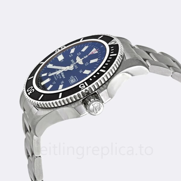 BrandBreitlingDial ColorBlack DialMovementAutomaticCase ColorSilver-toneModelY17393101B1A1SeriesSuperoceanGenderMen’sBand ColorSilver-toneCaseThickness14mmBand Material: 316L. The situation is that daily seawater corrodes 316L, which is sufficient for this kind of steel.Hand: Silver Tone. About the hand design of the watch is silver-tone, which is delicated and cool.Dial Markers: Index. The watch with indexes dial markers help us check the time anytime, anywhere.Clasp: Fold Over Clasp. Our watch uses a folding buckle strap, which has a unique design that creates a secure clasp, which can be opened and closed with ease.Second Markers: Minute markers around the outer rim. The second mark on the watch is also called the clock hand. This design element has been used in many famous designs such as watches and other items.Watch Case: 316L. The case is the most important part of the watch. 316L is suitable for daily seawater corrosion. This kind of steel is sufficient.Luminiscence: Hands. For the watch, the luminiscence is hands. It makes your watch look more high-end.Water Resistance: 30 meters. The watch’s waterproof depth is 30 meters, which has a good waterproof function. Tips: The standard configuration is just life waterproof, need to purchase additional waterproof service which is up to 30 meters.Bezel Material: Stainless Steel. A stainless steel bezel has high dimensional stability, high resilience and UV resistance. It can be used in both hard and soft cases. It’s also resistant to water, heat and deliquescent substances like oil or food.Crystal: Mineral Glass. For the watch, crystal is a very important part, which is conducive to watching and can bring new visual effects to people when looking at the time.Case Back: Solid. In the watch world, a sturdy back cover is very important, it is a great way to add style and elegance to your wrist. Scratch-resistant and wear-resistant watches are becoming more and more popular.”A Replica”/”Quartz” version watch tip: This version is very discounted, the sub-dial index of “A Replica”/”Quartz” may be different from the original watch, please understand. If you really care about the differences, it’s better to choose our AAA and AAAAA versions. Also, due to differences in lighting and angles, please allow for slight differences between the main image and the real thing – especially for “A Replica”/”Quartz” version. In addition, you are welcome to view our physical pictures, if necessary, please contact our customer service. Thanks.
