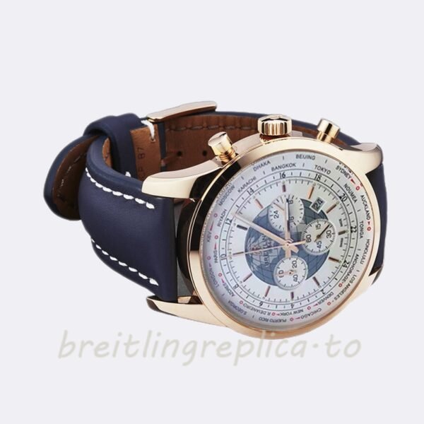 Band ColorBlue-toneBrandBreitlingSeriesTransocean ChronographBandLength18cmModelRB0510U0A733CSGenderMen’sCaseThickness15mmWatch Case: 316L. The watch case is made of 316L, which will never fade, deform, and is environmentally friendly.Crystal: Mineral Glass. Mineral Glass is a good choice because it has good thermal properties, excellent electrical and dielectric properties, and chemical resistance. It has the characteristics of high temperature resistance, good thermal conductivity, high hardness, infrared penetration, and good chemical stability.Dial Markers: Index. According to a study, the human eye is sensitive to point, unlike the ordinary dial, the watch uses some simple indexs as dial markings to show us what time it is.Second Markers: Minute Markers around the outer rim. The minute marker around the outer edge of the glass is one of the most recognized design elements in all industries. Also known as clock hands, this design element has been used in many well-known designs such as watches and other objects.Case Back: Solid. We use a sturdy back cover, which is usually used to protect the movement of the watch from scratches and external damage. These watch cases can also increase the durability and strength of the watch movement.Water Resistance: 30 meters. We make the watch waterproof at 30 meters, which is like a real watch. Tips: Standard configuration is just daily waterproof, need to purchase additional waterproof service which is up to 30 meters.Hand: Rose Gold-tone. The design of the watch’s hands is rose gold-tone which is pretty cool and fashionable.Band Material: Leather.The leather material will make the wearer look more temperamental.Clasp: Deployment. Deployment clasps are used here is a great way to protect and store your watch. It has a unique design that creates a secure lock, which can be easily opened and closed.Bezel Material: Stainless Steel. The bezel, made of stainless steel bezel, has high dimensional stability, high resilience and UV resistance. It can be used in both hard and soft cases. It’s also resistant to water, heat and deliquescent substances like oil or food.Please understand that the subdial of different versions may have differences. If you need real pictures please contact customer service, thanks.