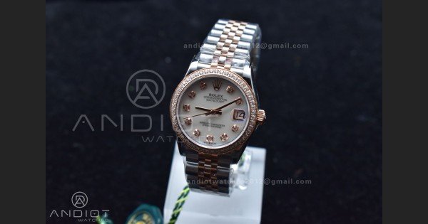 Reviews Over DateJust 31 Ladies 278289 WF RG 316L Steel Silver Dial Diamonds Bezel and Markers on President Syle Bracelet
