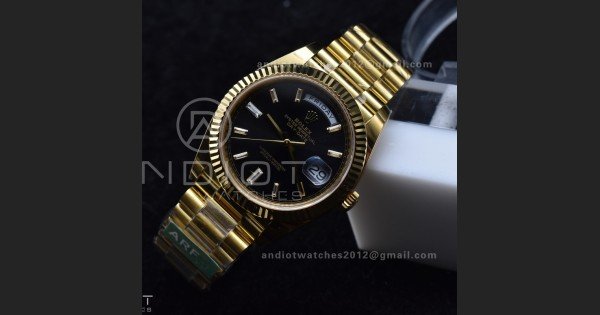 Day Date 40 YG 228238 ARF 1:1 Best Edition Black Crystal Dial On President Bracelet VR3255 (Gain Weight)