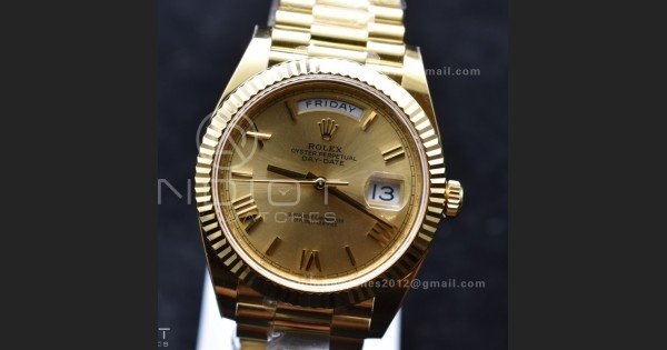 Reviews Over Day Date 40 YG 228238 ARF 1:1 Best Edition Gold Roman Dial On President Bracelet VR3255 (Gain Weight)