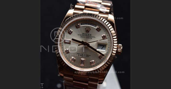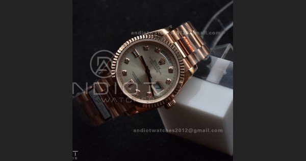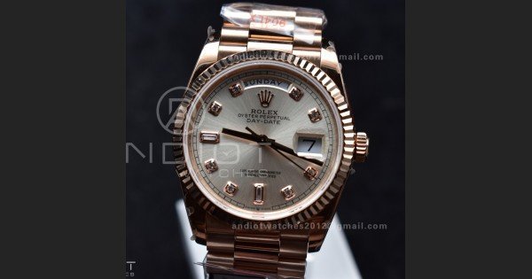 DayDate 36 RG QF Best Edition 904L Steel Silver Dial with Square Diamond on President Bracelet vr3255 V5 (Gain Weight)