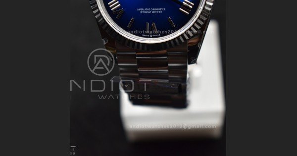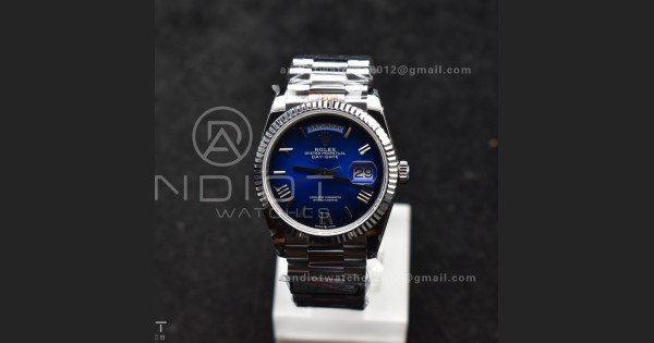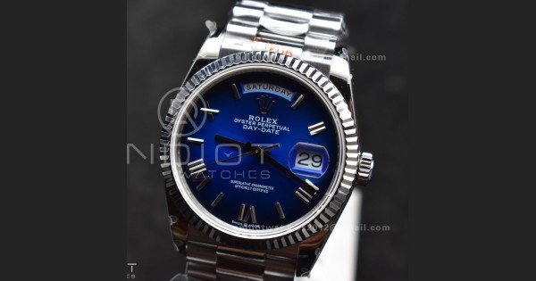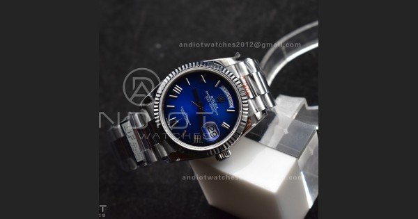 DayDate 36 SS QF Best Edition 904L Steel Faded Blue Roman Dial on President Bracelet vr3255 V5 (Gain Weight)