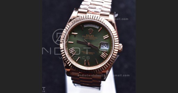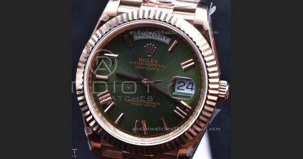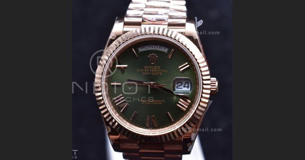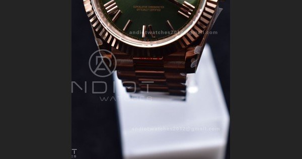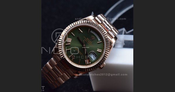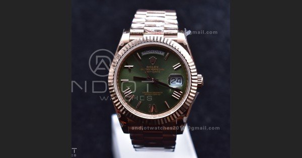 Reviews Over DayDate 40 RG GMF Tungsten Weighted 904L Steel Green Dial Roman Markers on President Bracelet A2836 V2
