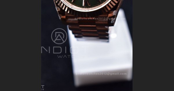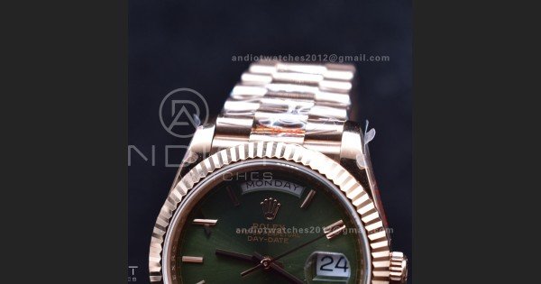 Write a review For DayDate 40 RG GMF Tungsten Weighted 904L Steel Green Dial Roman Markers on President Bracelet A2836 V2