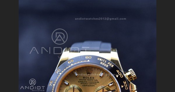 - Bezel : Black ceramic tachymeter bezel, real gold plated correct markers, same shape and depth as genuine bezel