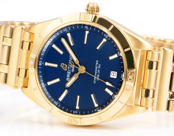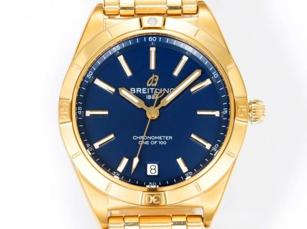 Effortless and stylish, this replica Breitling Chronomat K103801A1C1K1 36mm watch is genuine in its reproduction of the original Victoria Beckham limited edition. Its chic midnight blue dial reflects the fashion of 2024 Spring/Summer collection and provides an amalgamation of design driven by style and high-quality watchmaking.