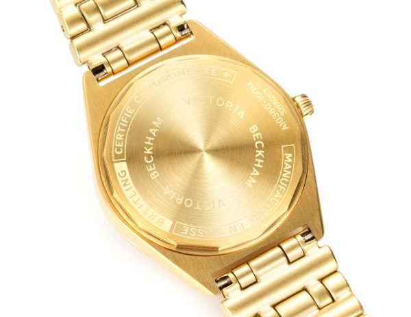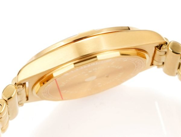 With slender gold-colored stainless steel case and matching Rouleaux-style bracelet, the watch is sporty yet elegant. With robust Swiss automatic movement and protected by sapphire crystal glass, it offers enduring performance and eternally gorgeous style. At 50 meters water-resistant, it’s perfect for everyday fashion.