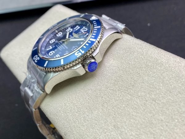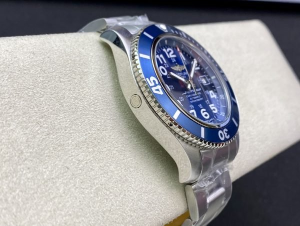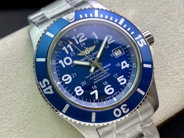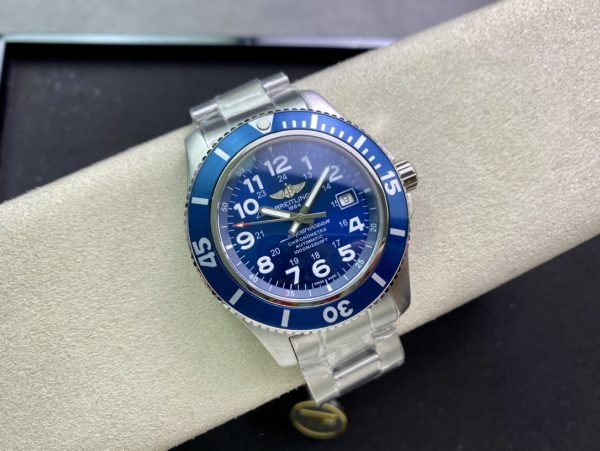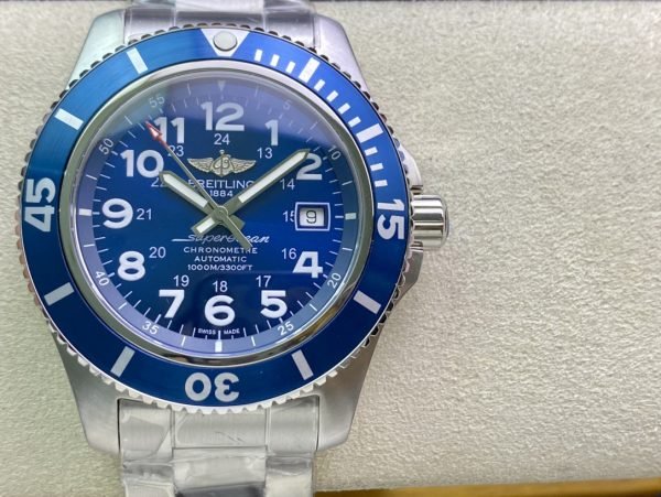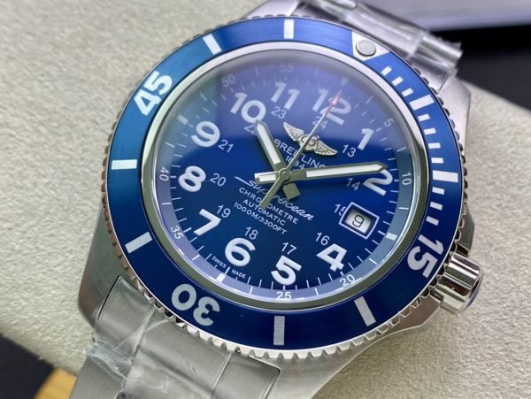 Crafted from hard stainless steel, the case and the strap are of hard yet fashionable look and can be used for sporty life or as a part of daily life. Powered by hard Swiss movement and covered by scratchproof sapphire crystal, Breitling Superocean II A17392D81C1A1 replica can provide up to 50 meters water resistance, an ideal partner for daily adventure.