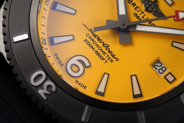 High-Quality Swiss Breitling SuperOcean M17368D71I1S2 Replica Watch – Bold Yellow Dial, 46mm Black Case