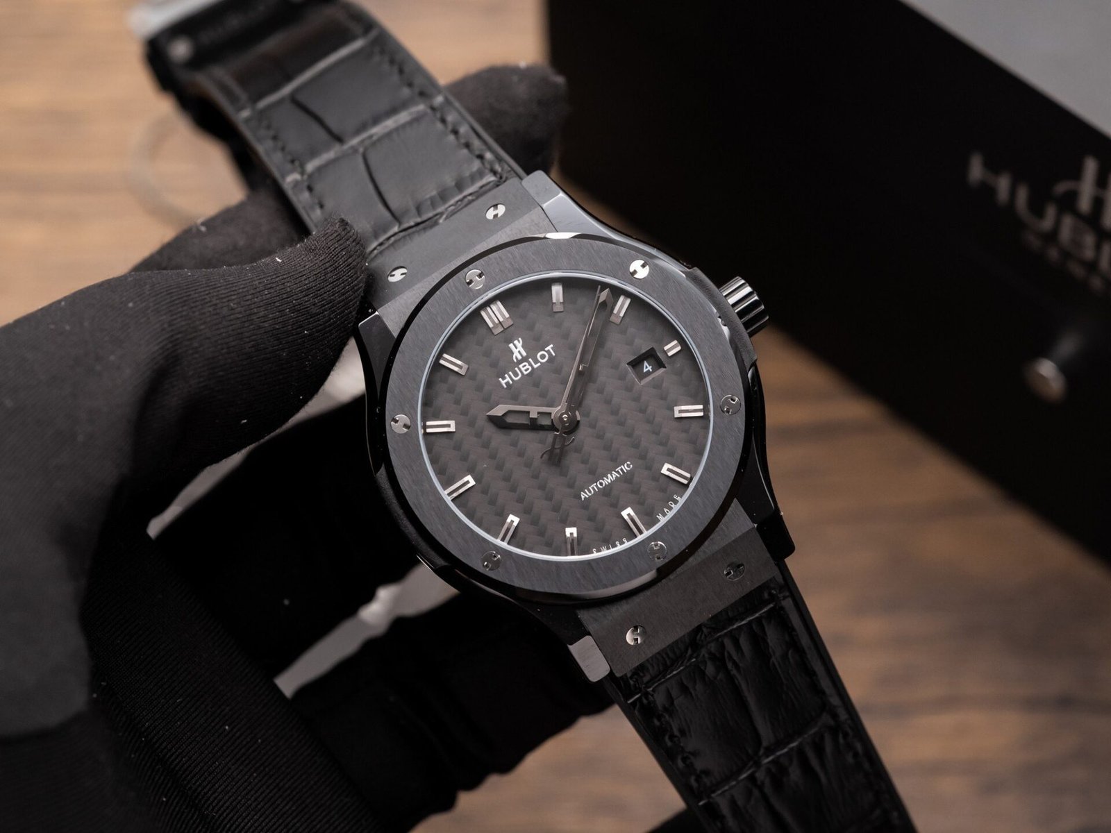 Hublot Classic Fusion Ceramic Carbon Dial Replica Watch Leather Strap GSF 42mm – Đồng Hồ Replica 1:1