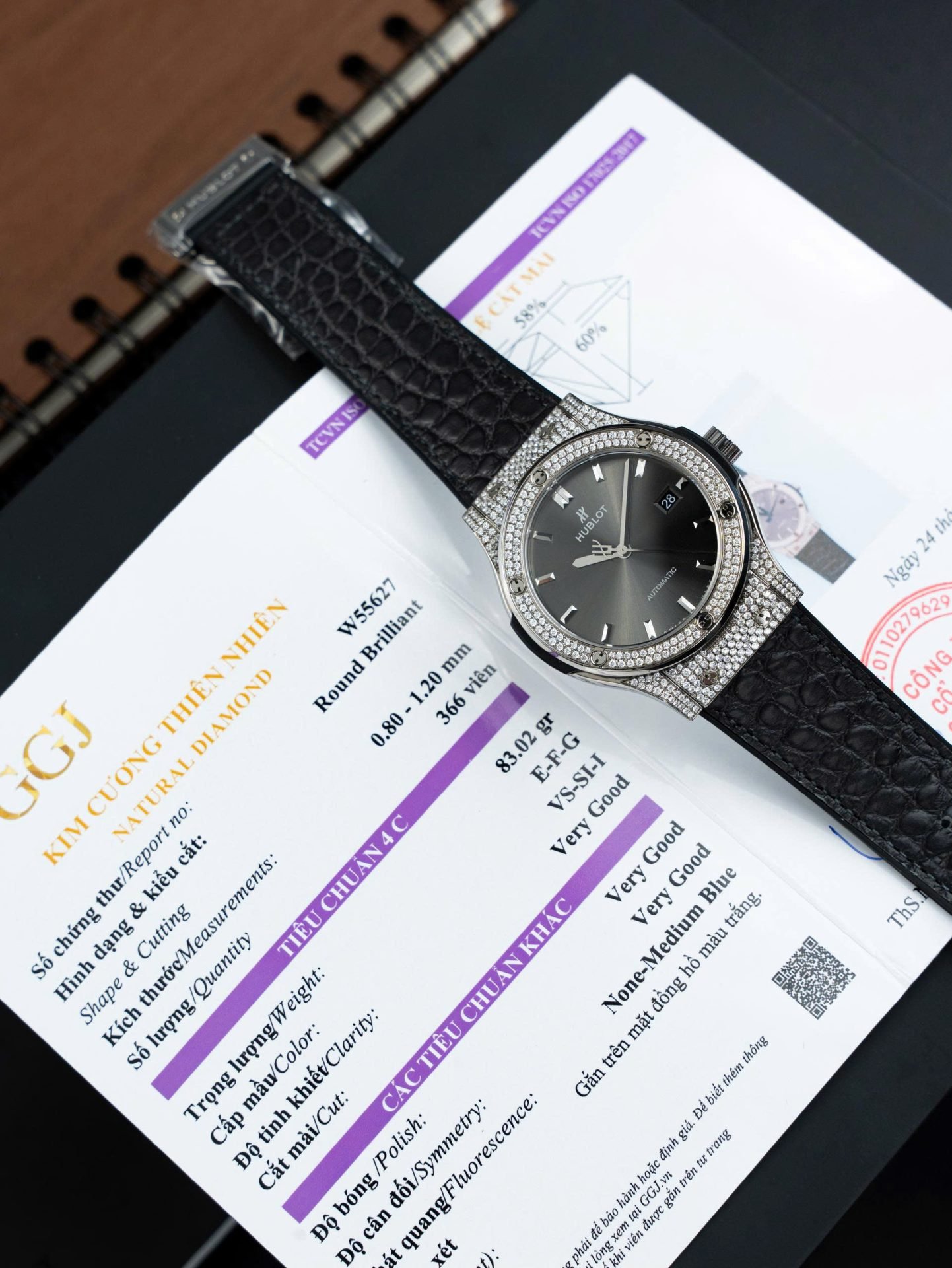 Hublot Classic Fusion Gray Dial Imitation Watches Custom Natual Diamonds Automatic SW300 Movement 42mm – Đồng Hồ Replica 1:1