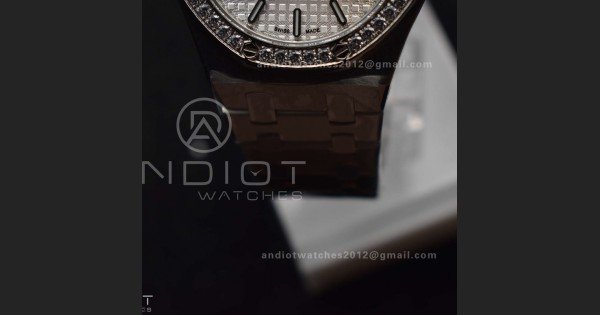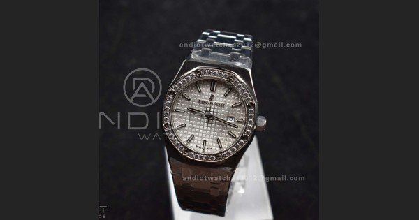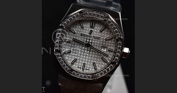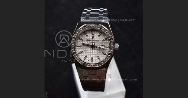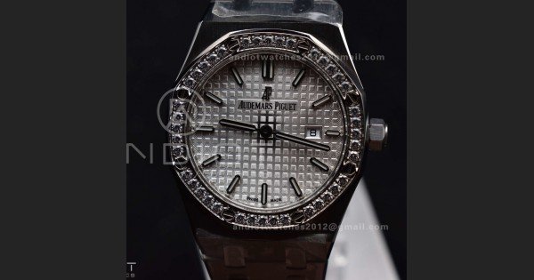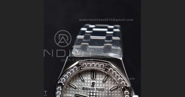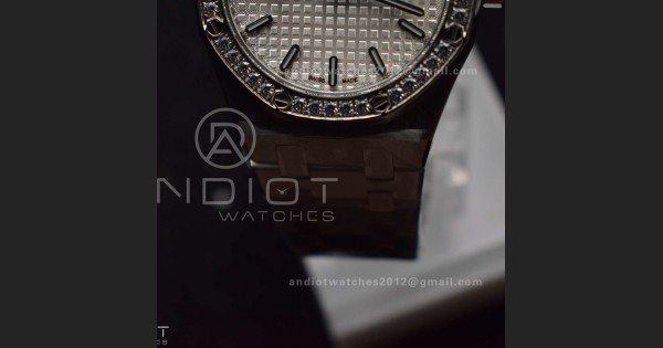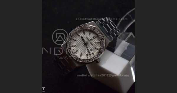 Lady Royal Oak 33mm 67651 SS/Diamond Bezel V7F 1:1 White Textured Dial On Stainless Strap Ronda Quartz to AP Cal.2713