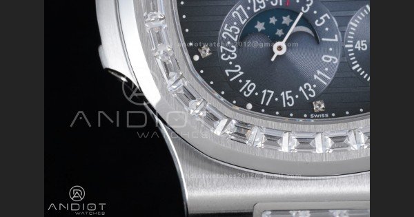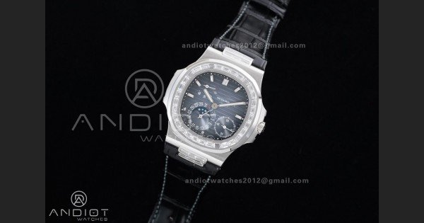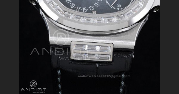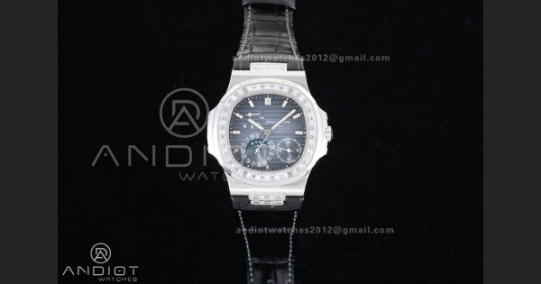 Write a review For Nautilus 5712 Full Diamonds SS PPF 1:1 Best Edition Blue Dial on Black Leather Strap A240 Super Clone V3