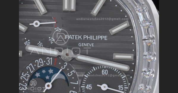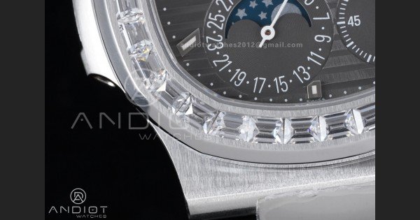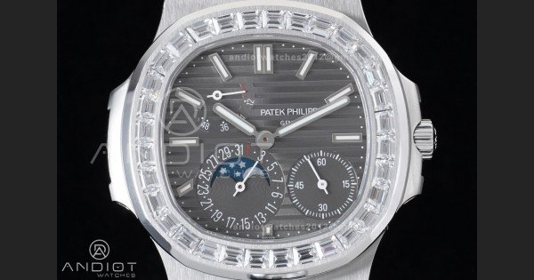 Write a review For Nautilus 5712 Full Diamonds SS PPF 1:1 Best Edition Gray Dial on Black Leather Strap A240 Super Clone V3