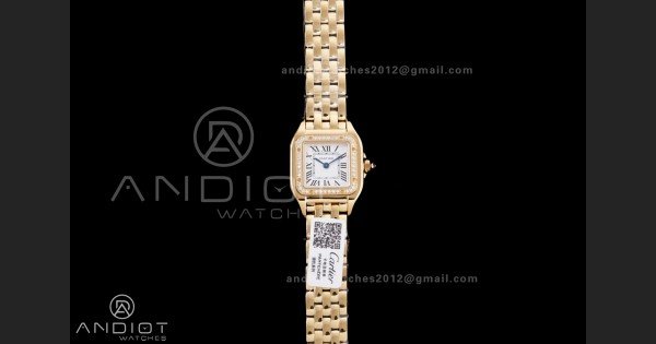 Write a review For Panthère Ladies 22mm YG AF 1:1 Best Edition White Dial Diamonds Bezel on YG Bracelet Ronda Quartz