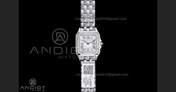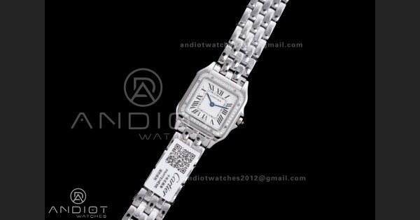 Reviews Over Panthère Ladies 27mm SS AF 1:1 Best Edition White Dial Diamonds Bezel on SS Bracelet Ronda Quartz