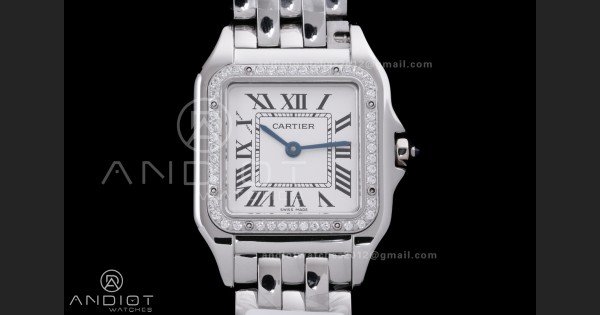 Write a review For Panthère Ladies 27mm SS AF 1:1 Best Edition White Dial Diamonds Bezel on SS Bracelet Ronda Quartz