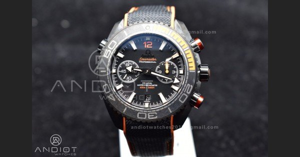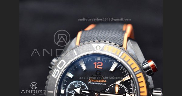 Reviews Over Planet Ocean Master Chronometer OMF DLC Black/Orange Bezel Black Dial on Black Nylon Strap A9900 (Black Balance Wheel)