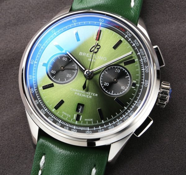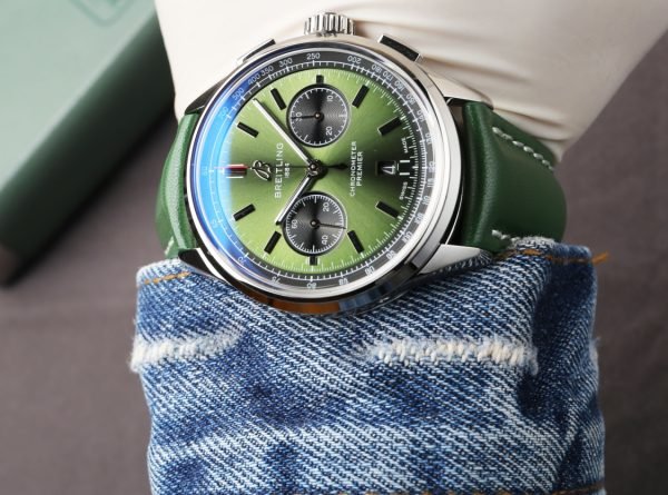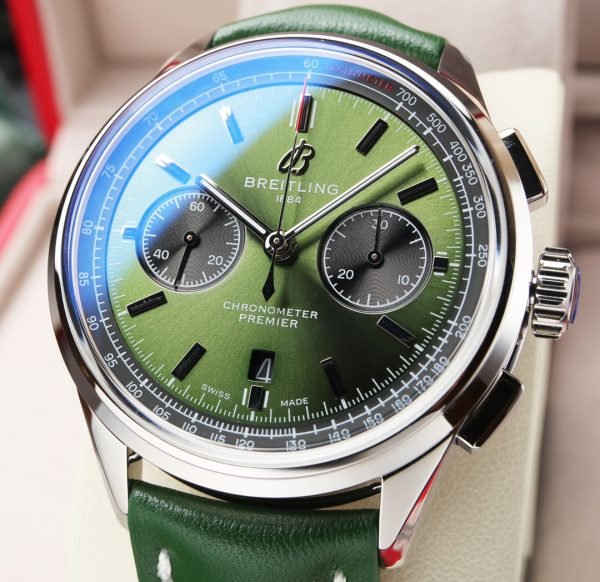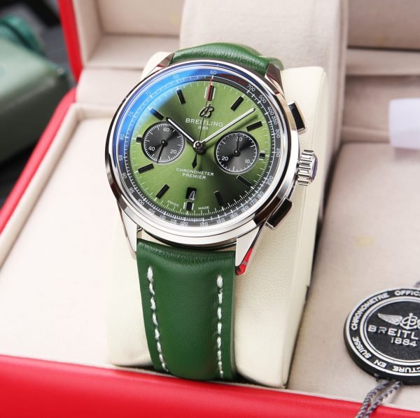 2 reviews for Premium Replica Breitling Premier B01 AB0118221L1P1 Watch – 42mm Green Dial, Vintage-Inspired Design, Green Leather Strap