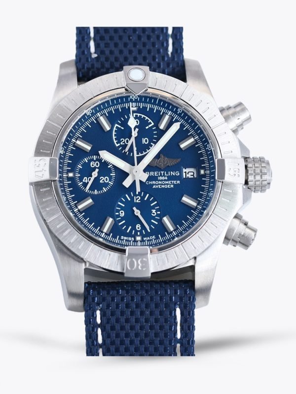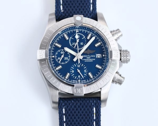 Premium Swiss Breitling Avenger A13385101C1X1 Replica 43mm Chronograph Blue Dial – AAA Super Clone Watch With Textile Strap
