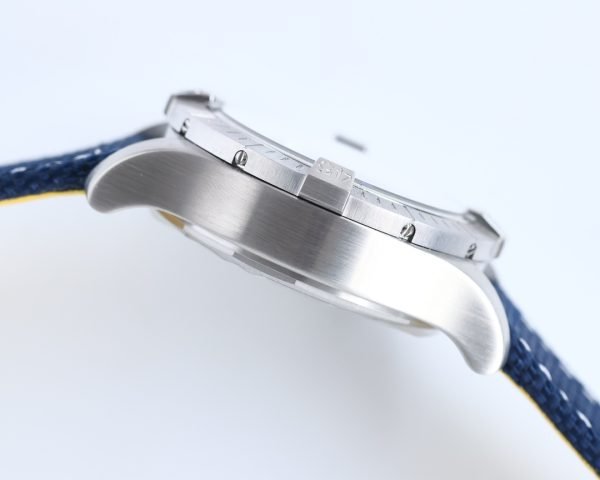 This replica watch comes with a blue leather strap. And it fastened with a stainless steel pin buckle or deployment clasp. Water resistant to 50 meters, it is suitable for everyday wear and exploration.
