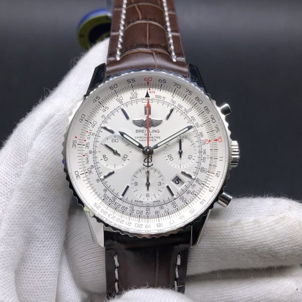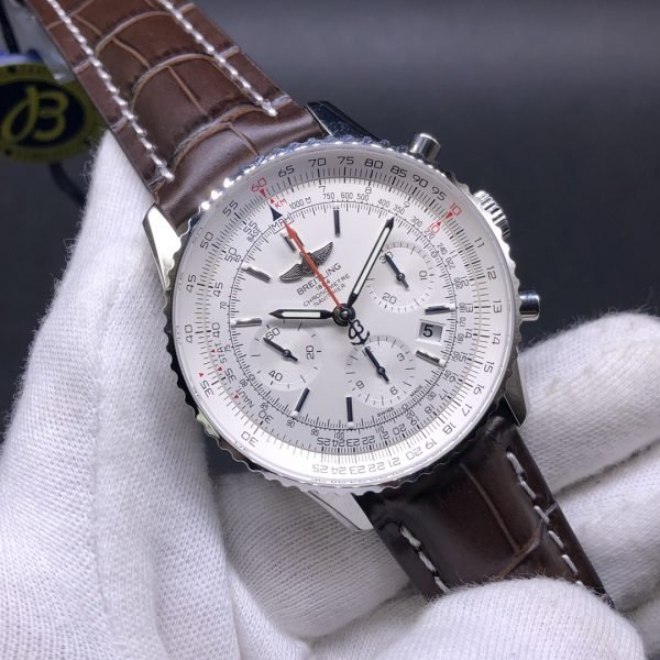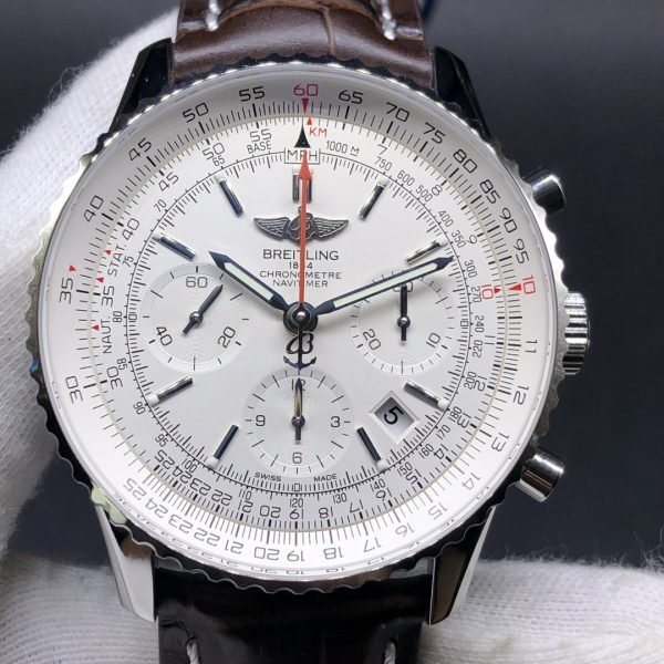 Premium Swiss Men’s Breitling Navitimer AB0123 Replica Watch With White Dial & Brown Leather Strap