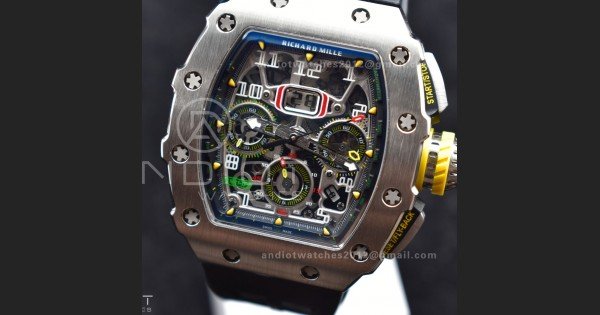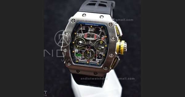 Reviews Over RM011 SS Chrono KVF 1:1 Best Edition Crystal Dial Black on Black Rubber Strap A7750 V3