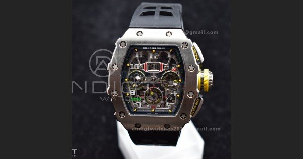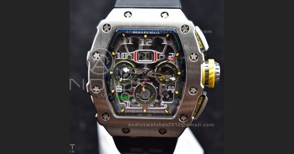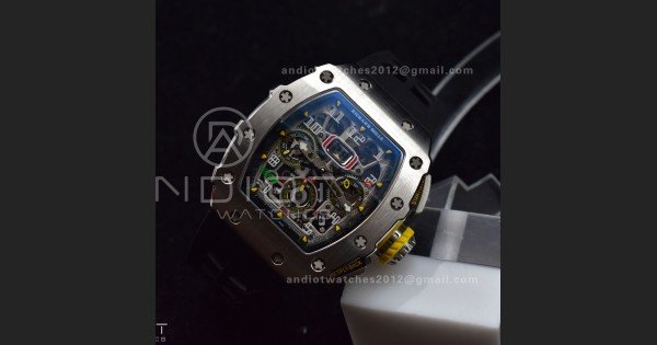 Reviews Over RM011 SS Chrono KVF 1:1 Best Edition Crystal Dial Black on Black Rubber Strap A7750 V3