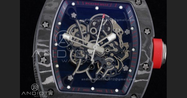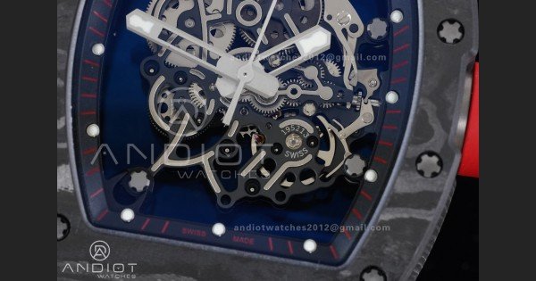RM055 NTPT/Ti APSF 1:1 Best Edition Black Inner Bezel Red Crown on Black Rubber Strap RMUL2 Super Clone