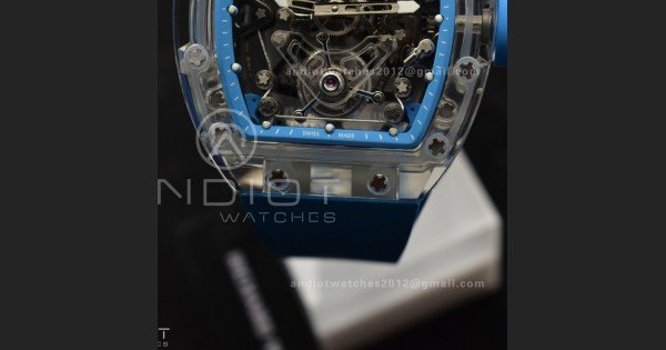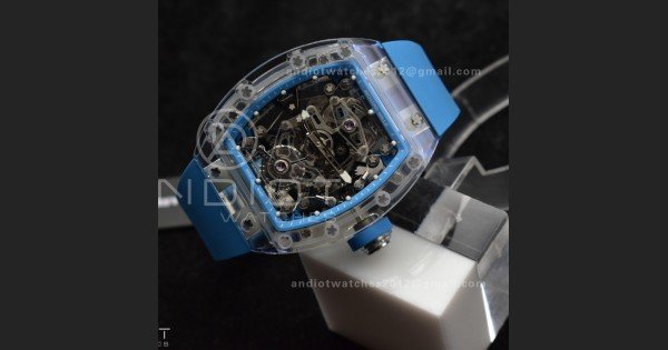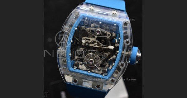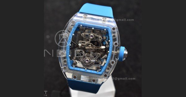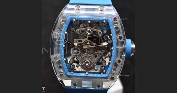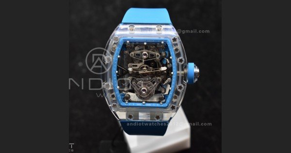 RM56-02 Transparent Tourbillon RMF Best Edition Skeleton Blue Dial on Blue Rubber Strap
